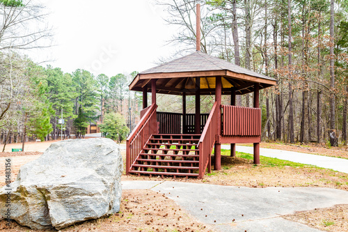 © dbvirago, Naklejka premium Wood Gazebo by Granite Boulder