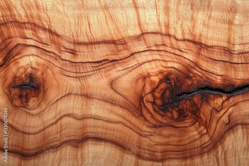 © AIS, Naklejka premium Wood grain showcasing unique patterns and textures in a richly colored surface with knots and natural imperfections