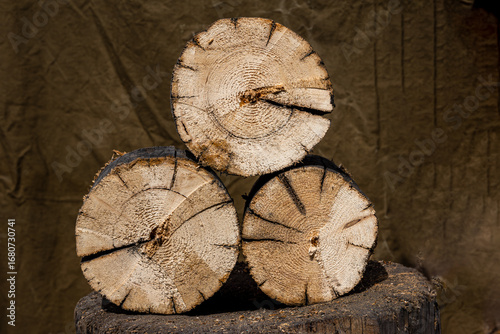 © Dmitrii, Naklejka premium Wood Logs Ready for Splitting on Tree Stump