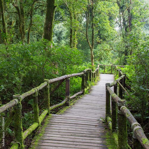 © sutichak, Obraz premium Wood of pavement in green jungle