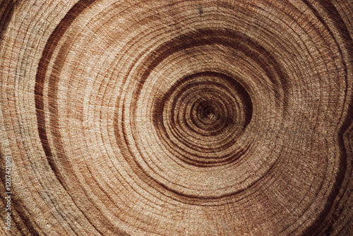 Fototapeta premium Wood pattern, detailed view of wooden texture with natural tree rings of juniper, eco textures earthy tones, dark color, Macro trend photo, circular growth patterns and organic beauty of material