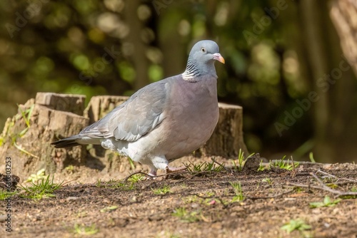 © Sarahlou Photography/Wirestock Creators, Fototapeta premium Wood pigeon in the forest
