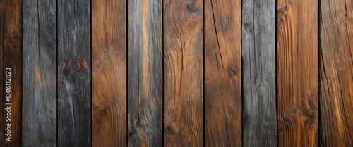 © Giovanni, Naklejka premium Wood plank texture background featuring an array of warm tones perfect for rustic design or natural themed projects.