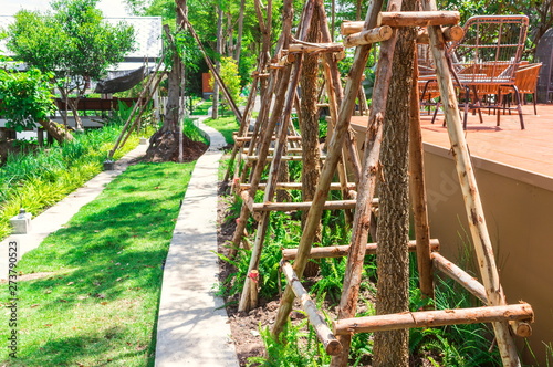 Fototapeta premium Wood stick crutches for holding the tree upright and strong in the nature park