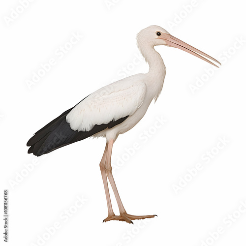© Selene Studio, Fototapeta premium Wood Stork Bird on White Background, avian, wildlife, animal, nature, isolated