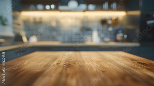 © Generative AI, Obraz premium Wood table top on blurred kitchen background : Generative AI