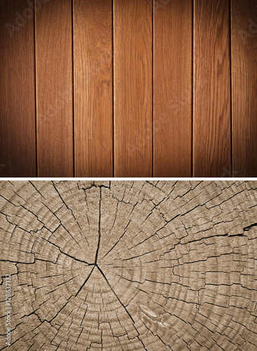 © hary_cz, Fototapeta premium Wood texture. Lining boards wall. Wooden background. pattern. Showing growth rings. set