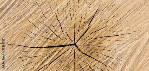 Fototapeta premium Wood texture of cut tree trunk - wooden surface background