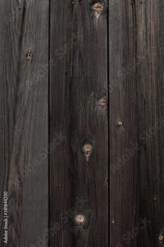 © Anita, Naklejka premium Wood texture. Old black boards with knots.