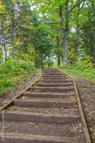 Obraz premium Wood trail and steps near Oldenburg Point at Jay Cooke State Park