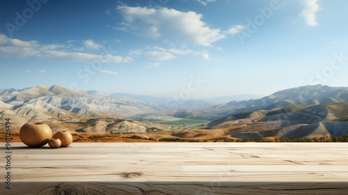 © Murtaza03ai, Fototapeta premium Wood white table top perspective in front
