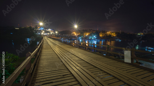Fototapeta premium Wooded bridge over the river in Sangkhlaburi District, Kanchanaburi, Thailand