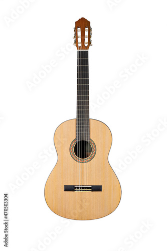 Fototapeta premium wooden acoustic guitar isolated over white background