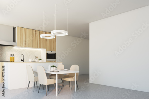 © ImageFlow, Fototapeta premium Wooden and white kitchen corner wall