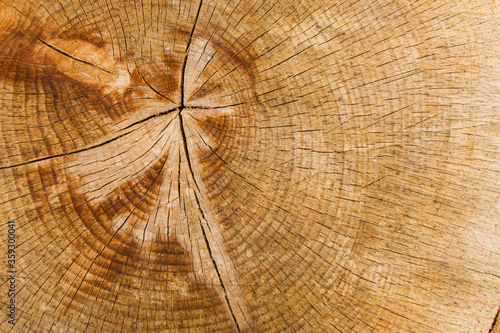 © taidundua, Fototapeta premium Wooden background, Cut tree pattern. Texture of cut and dry tree. Tree age rings. Cracks on the wooden background.