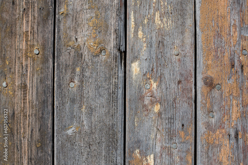 Naklejka premium wooden background with weathered wood and ruusty nails