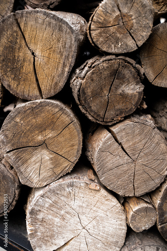 © KoshkinS, Naklejka premium wooden background with woodlog of tree