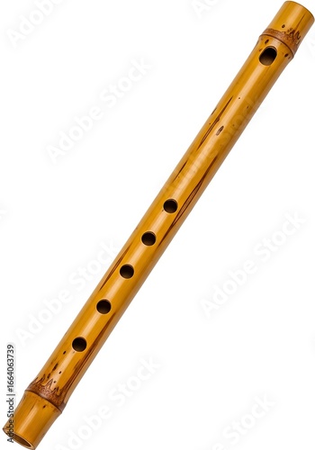 © jiman, Naklejka premium Wooden Bamboo Flute Musical Instrument.