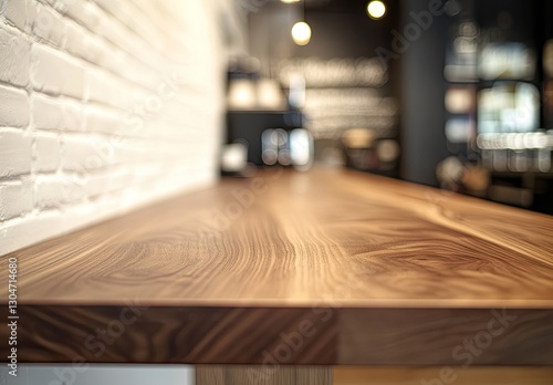 © Selsi, Naklejka premium Wooden bar counter in a modern cafe