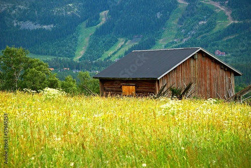 © annalovisa, Fototapeta premium Wooden barn in landscape