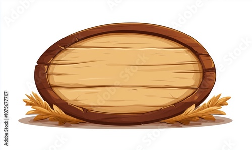 Naklejka premium Wooden barrel with empty space for text, surrounded by wheat