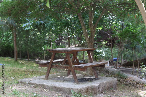 Naklejka premium wooden bench in the park