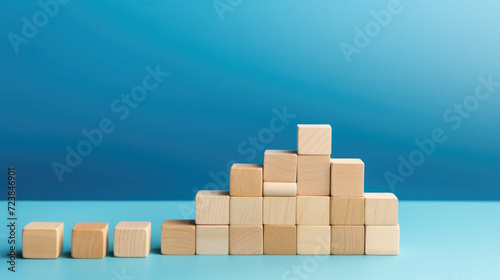 © Art AI Gallery, Obraz premium Wooden blocks on a blue background. The concept of growth .