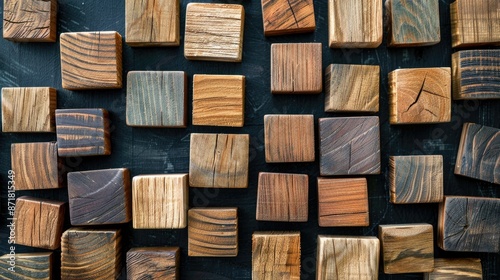 © The 2R Artificiality, Obraz premium Wooden blocks on blackboard background for text and stationery