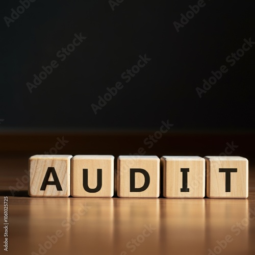 © iamfrk7, Obraz premium Wooden blocks spelling AUDIT, concept of financial review, analysis, and assessment for business planning and management