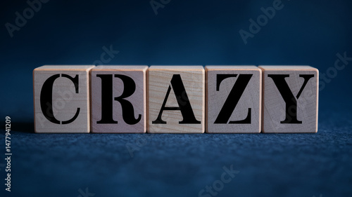 Fototapeta premium Wooden blocks spelling CRAZY on dark background, showcasing a concept of...