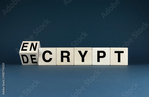 Obraz premium Wooden blocks spelling Encrypt - Decrypt.