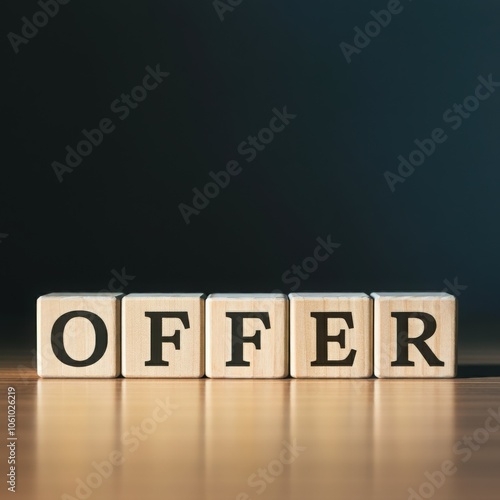 Obraz premium Wooden blocks spelling OFFER, concept of business deals, promotions, and exclusive discounts for customer engagemen