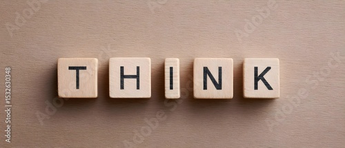 © Vital Stock, Obraz premium Wooden blocks spelling "THINK" on a wooden surface