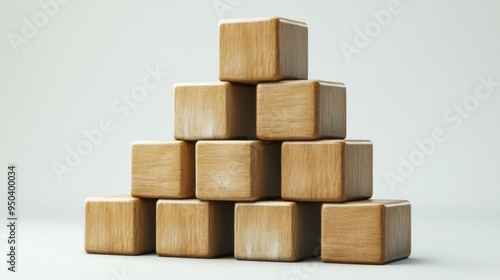© Alex Bayev, Fototapeta premium Wooden Blocks Stacked in a Pyramid Shape
