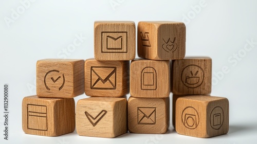 Obraz premium Wooden Blocks with Engraved Icons Stacked for Delivery or Display