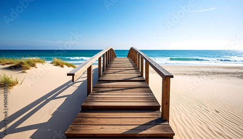 © Bara, Obraz premium Wooden boardwalk leading to a beach