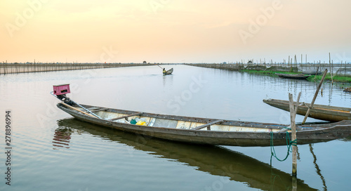 Fototapeta premium Wooden boat dock in Chuon lagoon, Hue, Vietnam. This is a living means of...