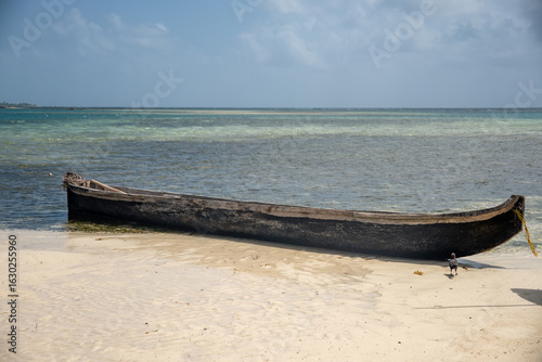 Fototapeta premium Wooden boat pulled up on the beach on an island in the San Blas Islands, Panama