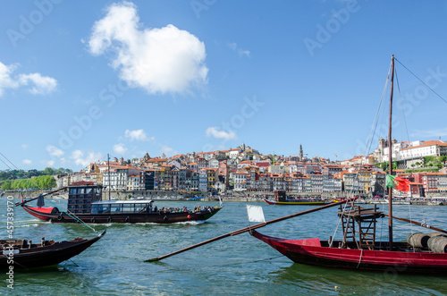 © gema23, Fototapeta premium Wooden boats on Douro River in Porto, Portugal.