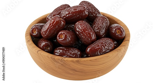 © Silhouette boss 7067, Obraz premium Wooden bowl filled with dark brown dates food fruit