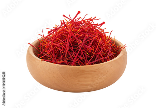 © faysal, Fototapeta premium Wooden Bowl of Saffron Threads, Isolated on transparent background
