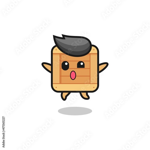 © heriyusuf, Fototapeta premium wooden box character is jumping gesture