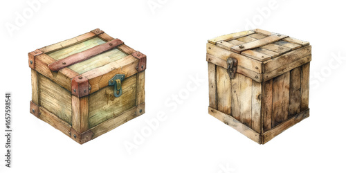 © Dar, Obraz premium wooden box watercolor vector illustration