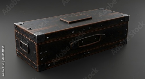 © arazka, Obraz premium Wooden Box with Metal Accents on Dark Background