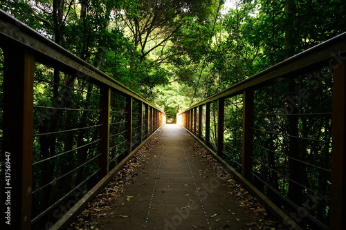 © Eric Akashi, Obraz premium Wooden bridge at Yambaru National Park in Okinawa, Japan - 沖縄 やんばる国立公園 橋