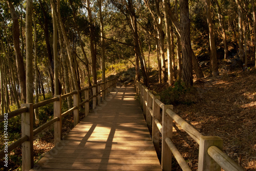 © Lucia, Obraz premium wooden bridge in the forest cies islands galicia