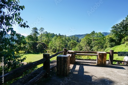 © ATIPPORN, Fototapeta premium wooden bridge in the park
