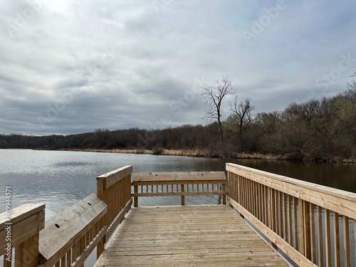 Naklejka premium wooden bridge over lake
