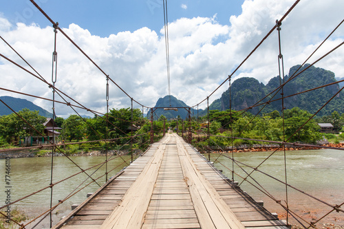Obraz premium Wooden bridge over Nam Song river, Vang Vieng