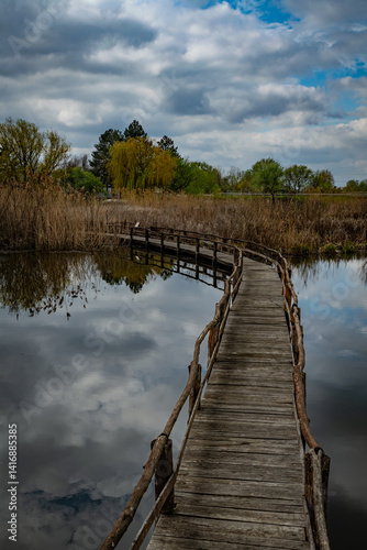 © alexlibris, Naklejka premium wooden bridge over the lake